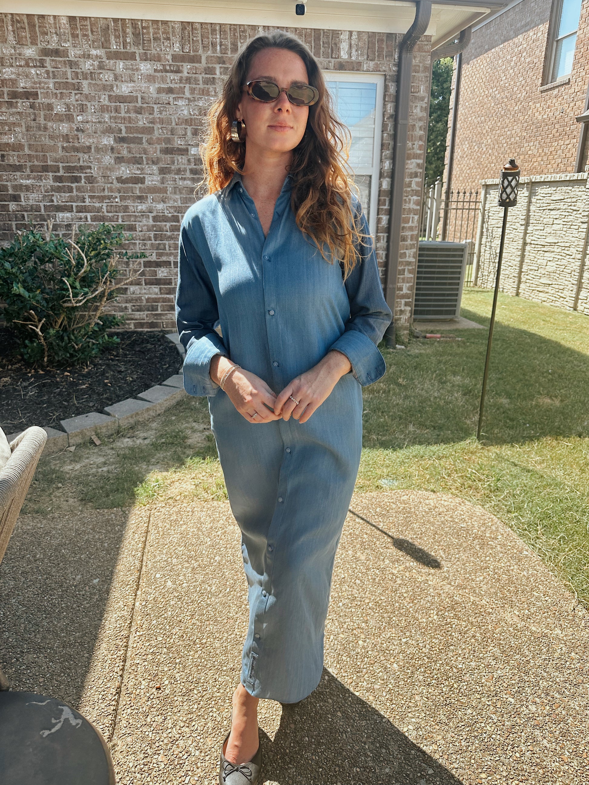 The Joya Trench is a new edition that we customized as a two toned trench!! You can easily wear the Joya unbuttoned or button her up & style her as a dress - The Joya is 100% tencel with slanted button slots so the fit is more secure & there aren’t any gaps!