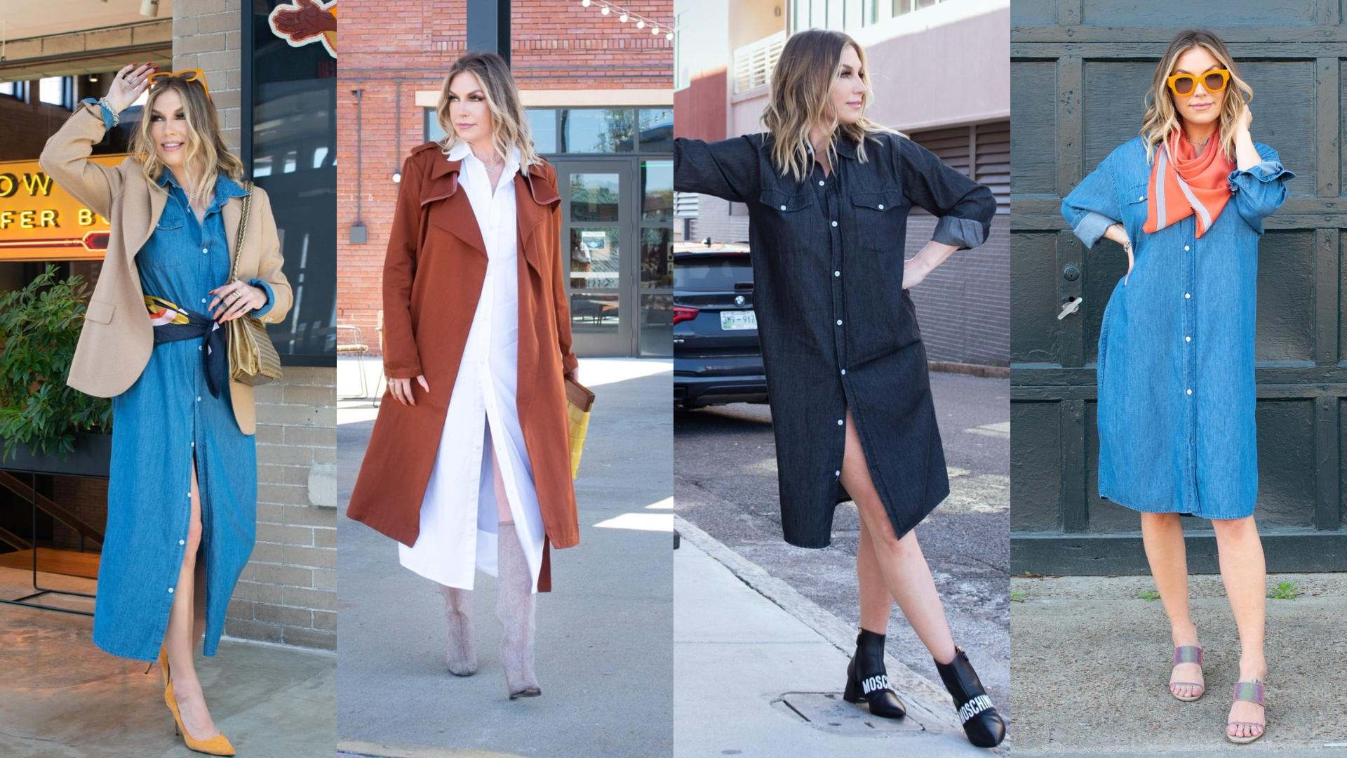 Style the Susan for the summer with a thin belt that can accentuate your waist! Pop the collar & add layered necklaces to show off...Don't forget a chic pair of sunglasses & a bold lip color can go a long way! Add some sandals OR heels depending on the mood & then you're almost done - to tie it all together grab your fav clutch & you're ready to go!